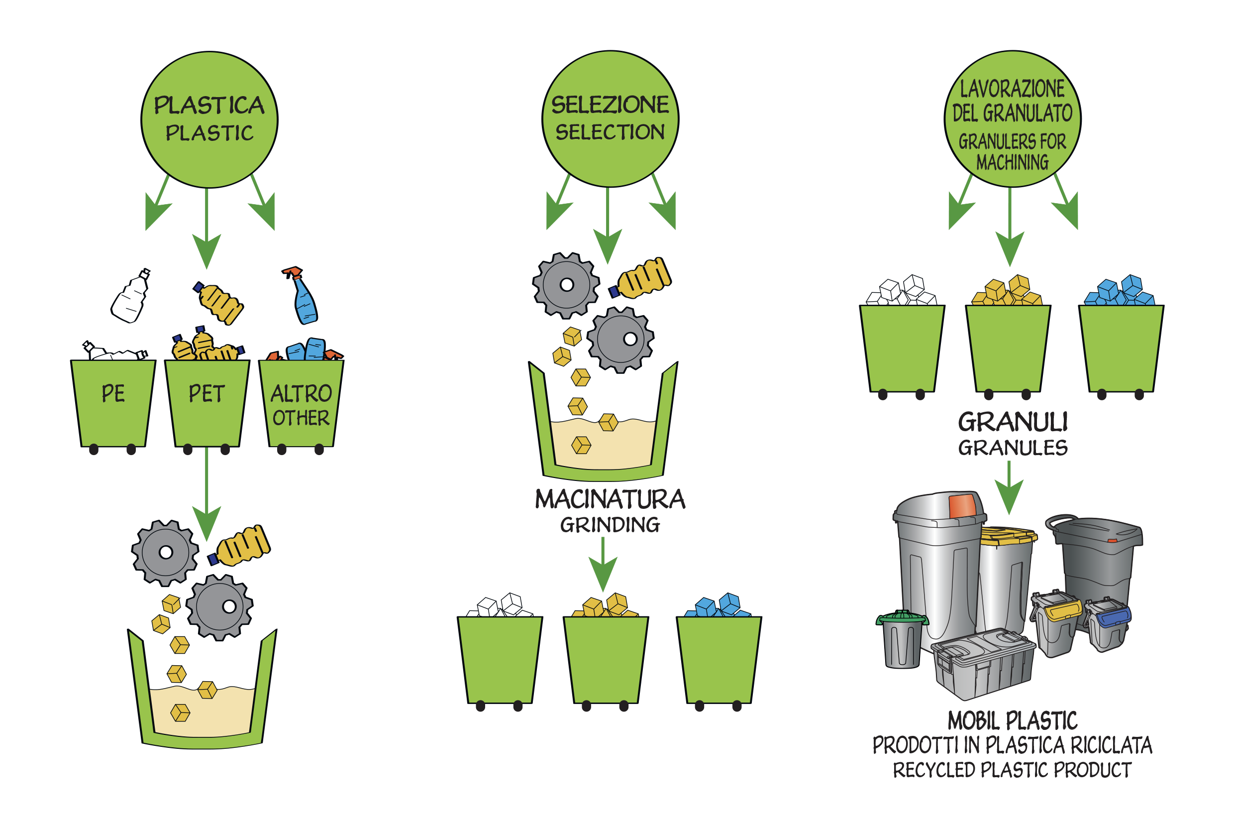 Mobil Plastic is actively committed to investing in resources and technologies to support a production and logistics supply chain aimed at protecting, safeguarding, and respecting the environment and the world around us. The extensive use of post-consumer raw materials, recycled and 100% recyclable, makes Mobil Plastic products low in environmental impact and aligned with a “green” philosophy, in compliance with and applying the guidelines of major global environmental organizations and, more broadly, the principles of the circular economy.