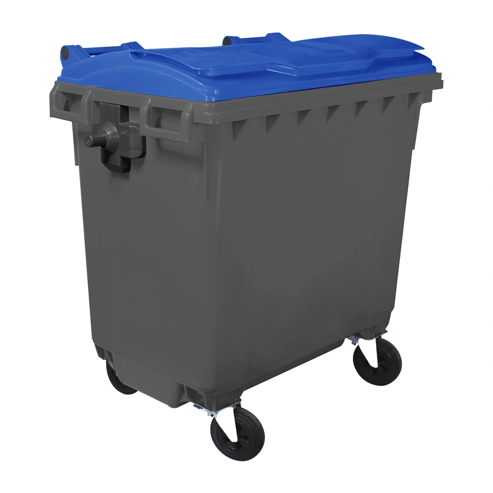 Sturdy four-wheeled bin, made of HDPE (High density Polyethylene) in bicolor version with grey base and colored lid: blue, yellow and light green. The bin is TUV certified according to the EN840 norm; it is chemical agents and parasites resistant and does not absorb liquids so it is completely washable and sterilisable.