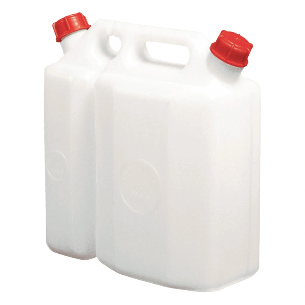Practical and sturdy tank, made of HDPE (High density Polyethyelene), in neutral-white color, with red cap and tap made of PP (Polypropylene). Suitable for food contact.