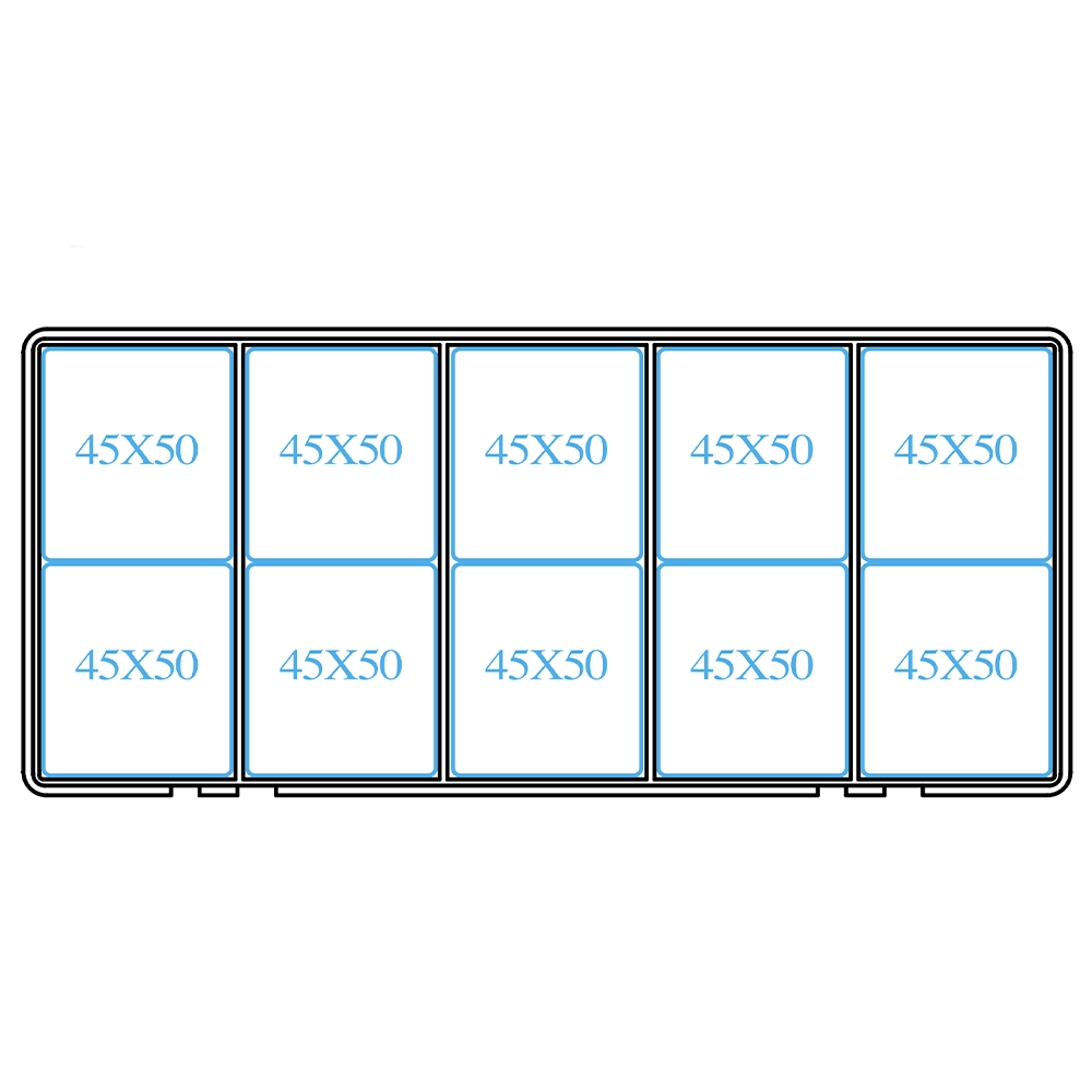 Organizer made of transparent PP, with click-in lock and 10 red removable cups.