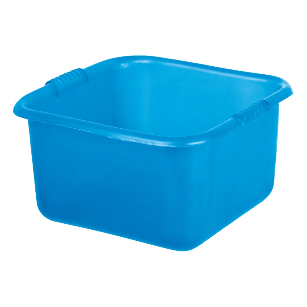 Practical square basin with handles made of LDPE (Low density Polyethylene), in blue color.
