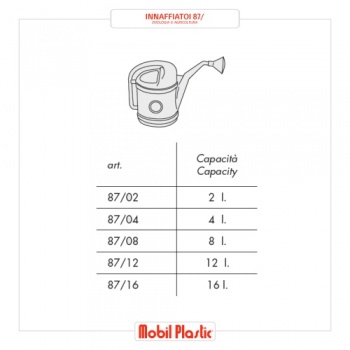 87/02-VET Innaffiatoio estremamente robusto dal design tradizionale con riserva d’acqua e comoda impugnatura. Realizzato in PEHD (Polietilene ad alta densità) verde. CAPACITÀ: 2 LT PESO: 0,200 KG Temperatura di esercizio: - 40° <> + 100°   87/04-VET Innaffiatoio estremamente robus ...Altre informazioni