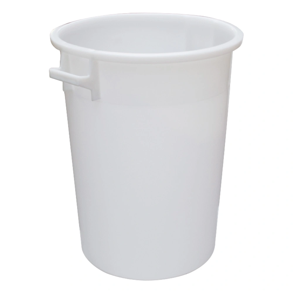 Bidone industriale in PP (Polipropilene) di colore bianco neutro, con protezione anti-UV e riciclabile al 100%. Idoneo al contatto alimentare.