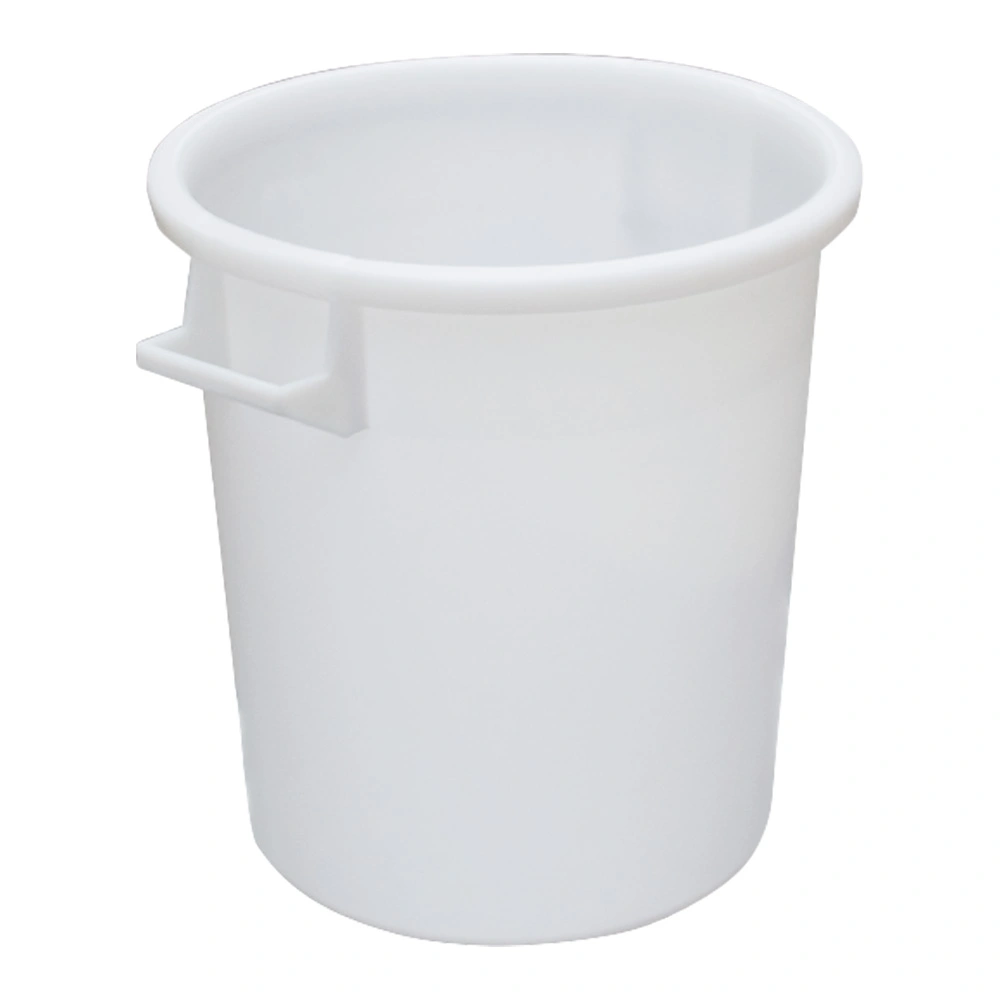 Bidone industriale in PP (Polipropilene) di colore bianco neutro, con protezione anti-UV e riciclabile al 100%. Idoneo al contatto alimentare.