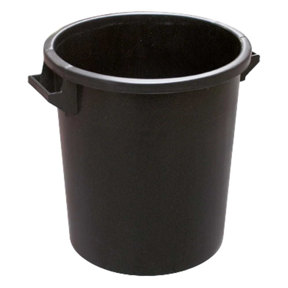 Bidone industriale in PEHD (Polietilene ad alta densità) di colore nero, con manici.