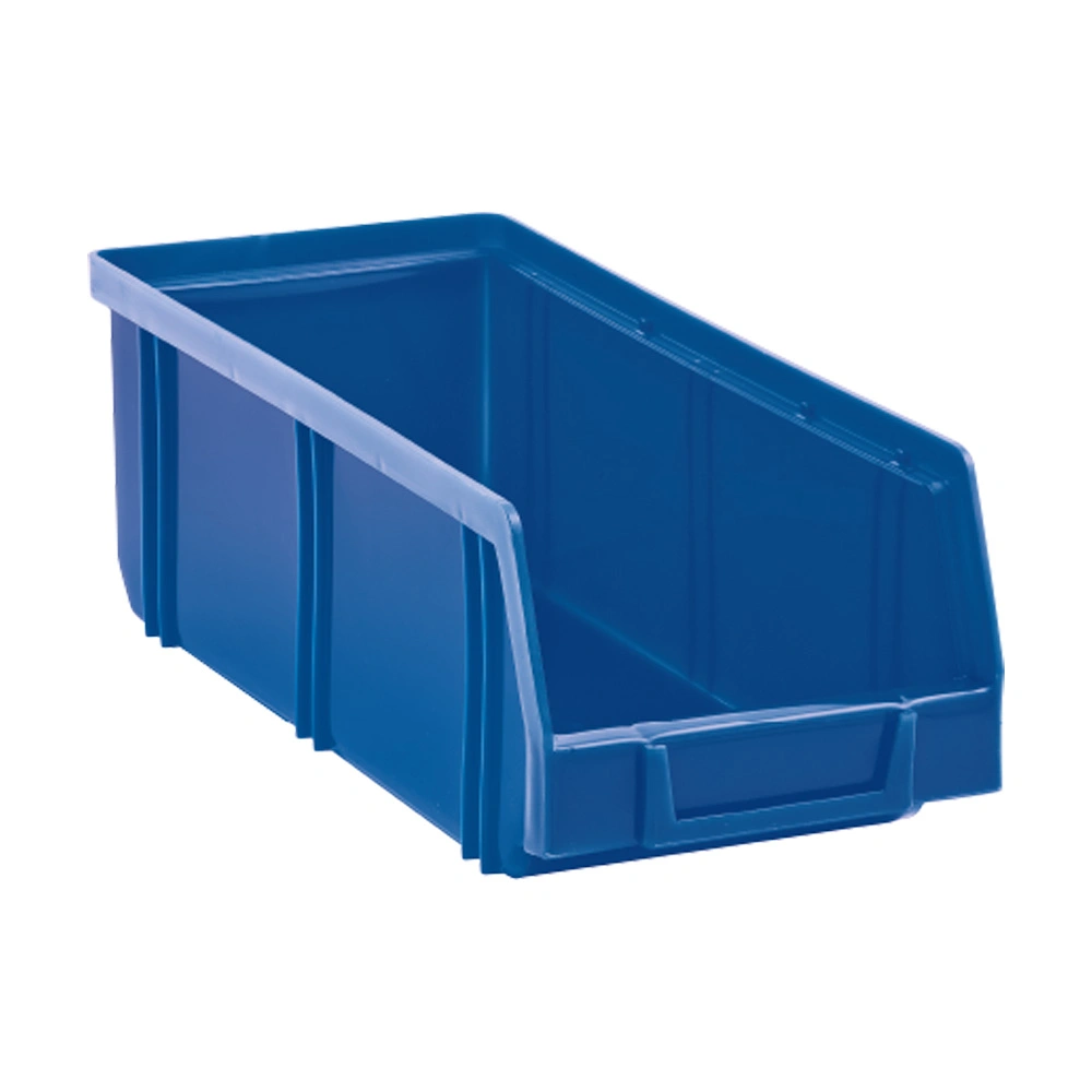 Contenitore sovrapponibile (impilabile), dotato di linguetta per aggancio nella parte posteriore, realizzato in PEHD (Polietilene ad alta densità).