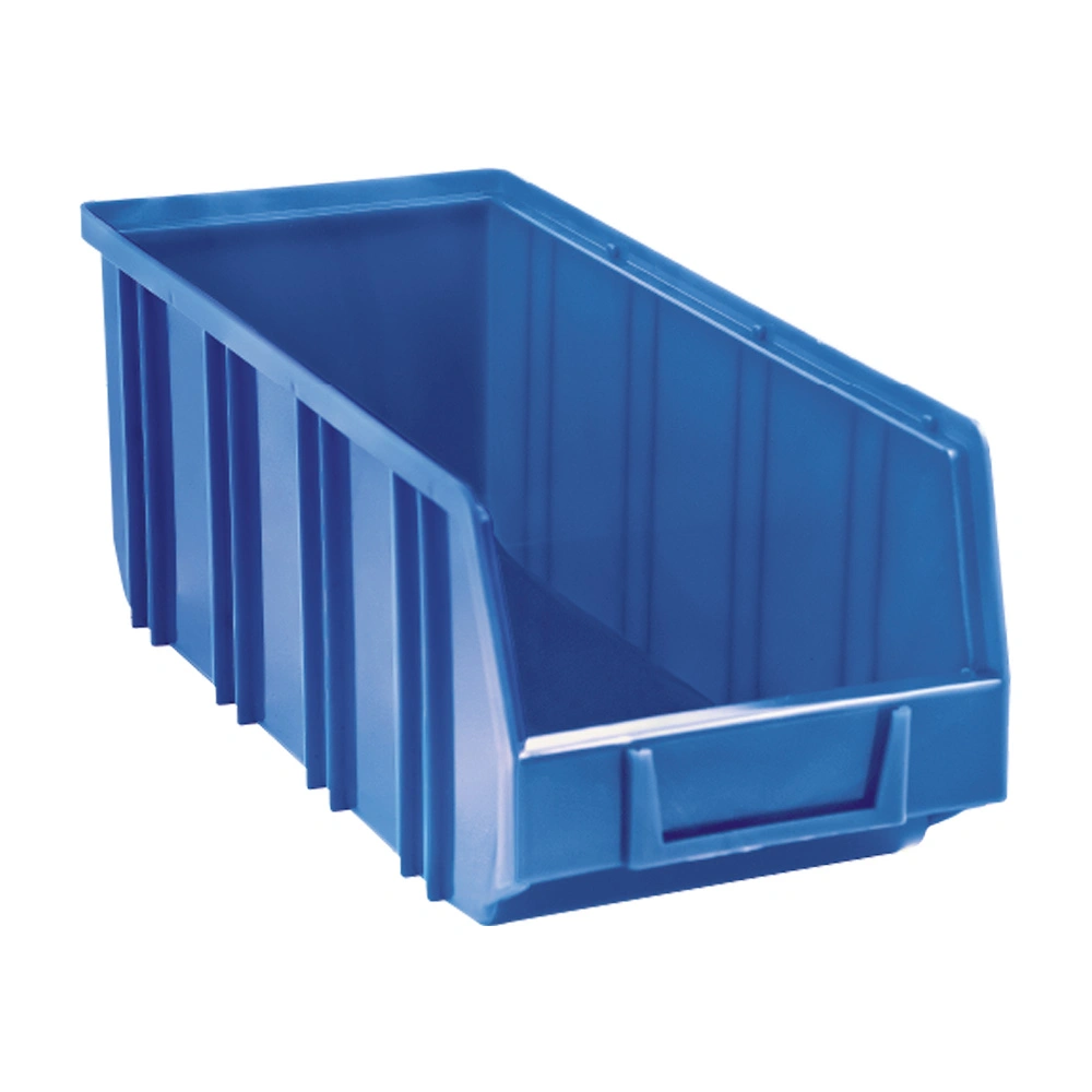 Contenitore sovrapponibile (impilabile), dotato di linguetta per aggancio nella parte posteriore, realizzato in PEHD (Polietilene ad alta densità).