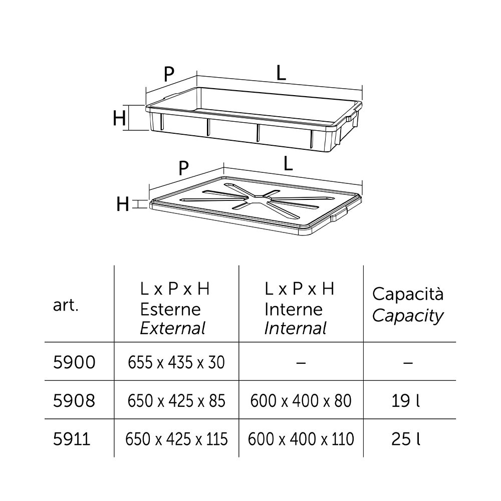 Coperchio in PP (Polipropilene) disponibile nelle varianti trasparente o bianco, compatibile con art. 5908-BIM e 5911-BIM. Idoneo al contatto con alimenti.